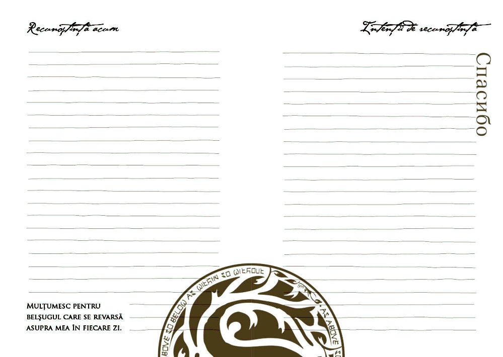 Carte cusută; Panglică roșie drept semn de carte; Hârtie fără acid, pentru păstrare îndelungată; Închidere magnetică