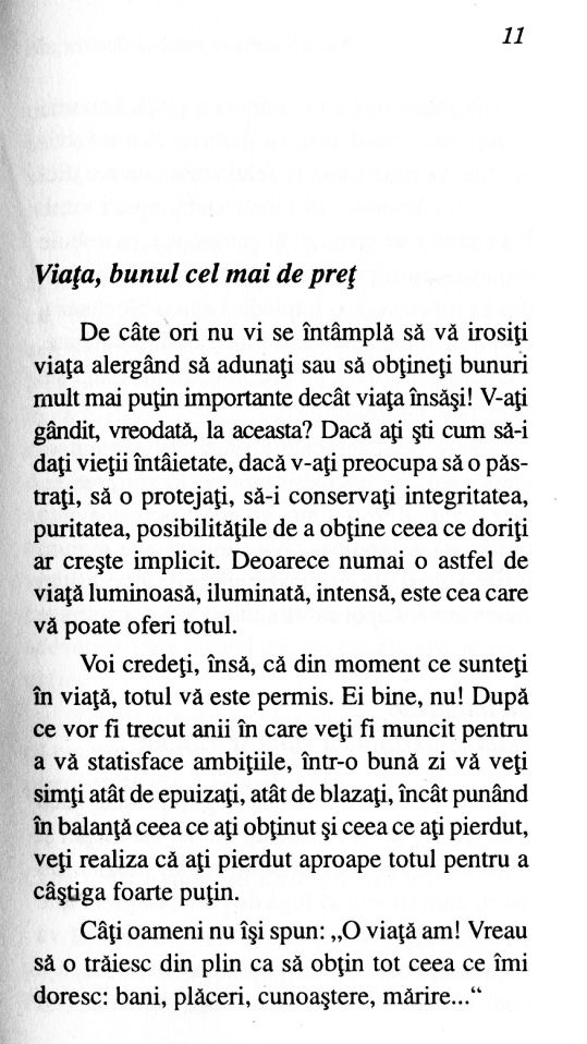 Deci obișnuiți-vă să priviți viața cotidiană cu toate actele pe care trebuie să le îndepliniți, cu evenimentele care vi se întâmplă, cu oamenii cu care sunteți în contact, permanent sau întâmplător, ca pe un material asupra căruia trebuie să lucrați pentru a-l transforma. Nu vă mulțumiți numai să acceptați ceea ce vi se oferă și să vă supuneți pasiv încercărilor la care sunteți expuși: preocupați-vă permanent să adăugați un element care să însuflețească, să dea viață, să spiritualizeze acest material. Căci în aceasta constă adevărata Viață spirituală: să fii capabil să introduci în fiecare activitate un element, un ferment capabil să proiecteze această activitate pe un plan superior. Veți replica: „Și atunci meditația... și rugăciunea?...” Da, într-adevăr, rugăciunea și meditația sunt acelea care vă ajută să captați aceste elemente mai subtile, mai pure și care vă permit să dați actelor voastre o nouă dimensiune. Omraam Mikhaël Aïvanhov