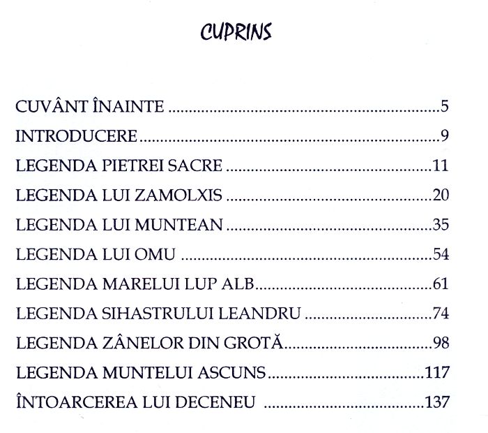 Ce mă vrăjește cel mai mult este misterul pe care autorii îl adaugă la taina pe care deja legendele o aveau incifrată. Locurile din poveste - Tărămul sacru, Sfinxul, grota - personajele, ființele fantastice - zâne, moși, voinici, sihastri, Leandru, Deceneu, Zamolxis, Omu, Șoimii, Marele Lup Alb și toți ceilalți, poveștile lor de iubire, credință, luptă și sacrificiu, toate laolaltă ar fi fost de ajuns și cu asupra de măsură pentru a ne oferi cel mai încăntător șir de legende ale dacilor. De fapt, singurul care există. Dar vraja se adâncește în momentul în care cei trei autori - Baci Farcaș, Felix Crainicu și Cristi Ioniță - întregesc fiecare frânturile de poveste. Cât la sută din poveste vine de la bâtrănul cioban din Bucegi? Cât la sută a reținut Cristi? Cât a adăugat Felix? Nici ei nu mai știu. Aici e misterul. Când intri în poveste, povestea te scrie pe tine, nu tu pe ea. De aceea, nu are rost să ne întrebăm ce e adevărat și ce nu în aceste legende. Fiecare lucru își are adevărul său, care astăzi poate fi socotit fabulație, iar mâine istorie curată.