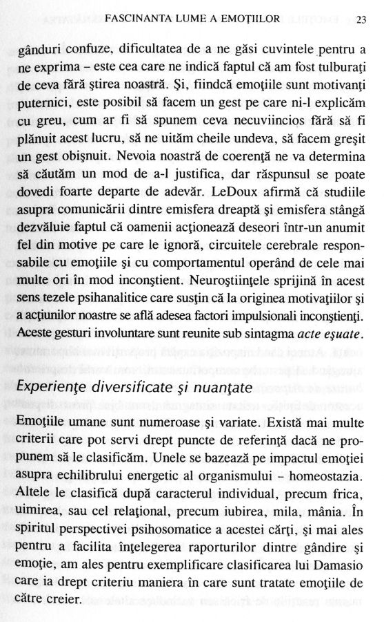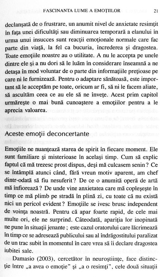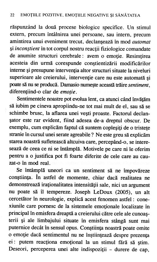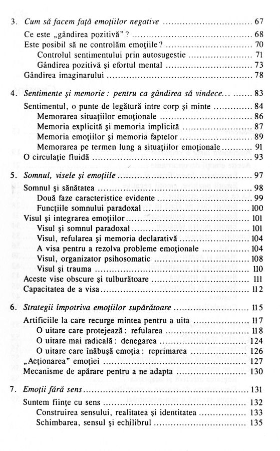 | Emoțiile influențează atât deciziile pe care le luăm, cât și atitudinea pe care o adoptăm față de ceilalți. În timp ce unele – iubirea, bucuria sau speranța – sunt plăcute, altele – furia, tristețea sau rușinea – ne provoacă stres. Cum se nasc emoțiile? Este posibil să le controlăm? Ce se întâmplă când încercăm să ignorăm o emoție? |