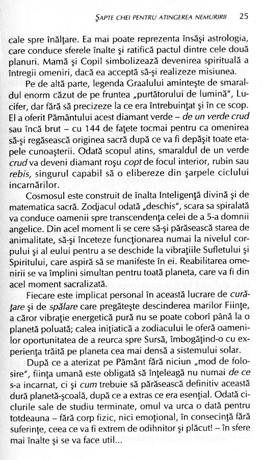Magnifică, dar discretă evocare a celor șapte chei care sunt numerologia, astrologia, tarotul, arborele Sefiroților, literele ebraice, alchimia și întreaga transformare lăuntrică, ea n-are categoric nimic înspăimântător, dar informează cu tărie că purificarea este singura cale de ascensiune posibilă.