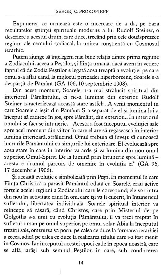 Sergej O. Prokofieff s-a născut în 1954 la Moscova. A studiat pictura și istoria artelor la Academia de Artă din Moscova. Este un apreciat scriitor, conferențiar și specialist al vieții și operei lui Rudo1f Steiner. După 1990, este unul dintre fondatorii Societății Antroposofice din Rusia. În 2001 devine membru al Consiliului Director al Societății Antroposofice Universale la Goetheanum în Domach, Elveția.