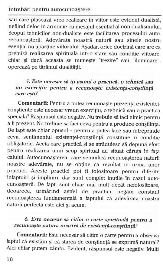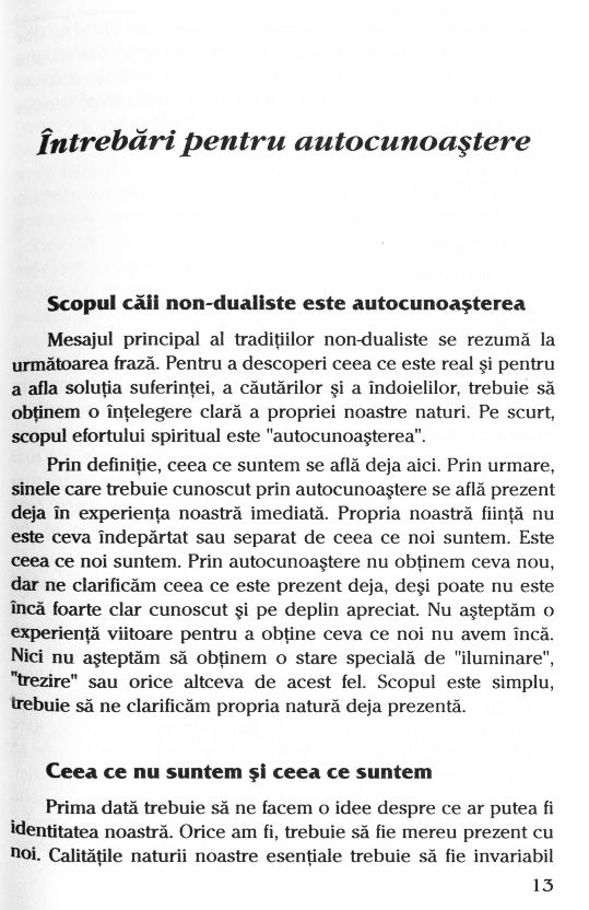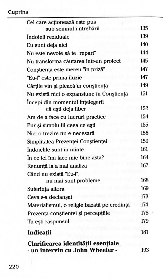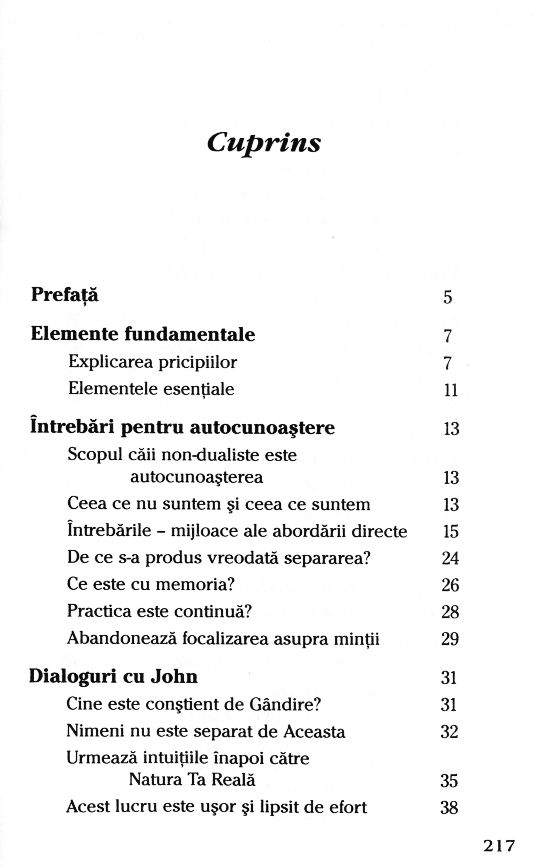Încercăm să îngrămădim peste acest adevăr simplu toate straturile formate din presupunerile și proiecțiile noastre ‹alunecoase› referitoare la cine suntem. Există doar un singur adevăr, un singur principiu, unul singur care nu are forme sau limite și acesta este ceea ce noi suntem. Este punctul de vedere la care John se întoarce mereu și mereu în dialogurile și reperele sale. John nu compromite adevărul cu idei tangențiale și diversiuni mentale, așa cum întâlnim în multe alte scrieri de acest gen.