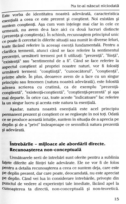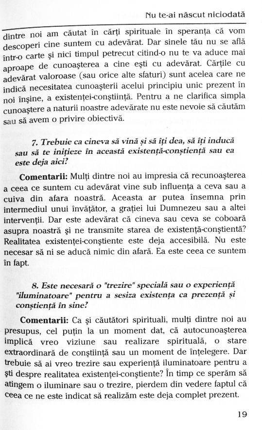„Nu poți să vorbești despre nașterea a ceva care nu are nicio formă și nici limite. Noi suntem Acela, iar Acela nu a luat formă vreodată. Așa că nu am fost născuți niciodată”.