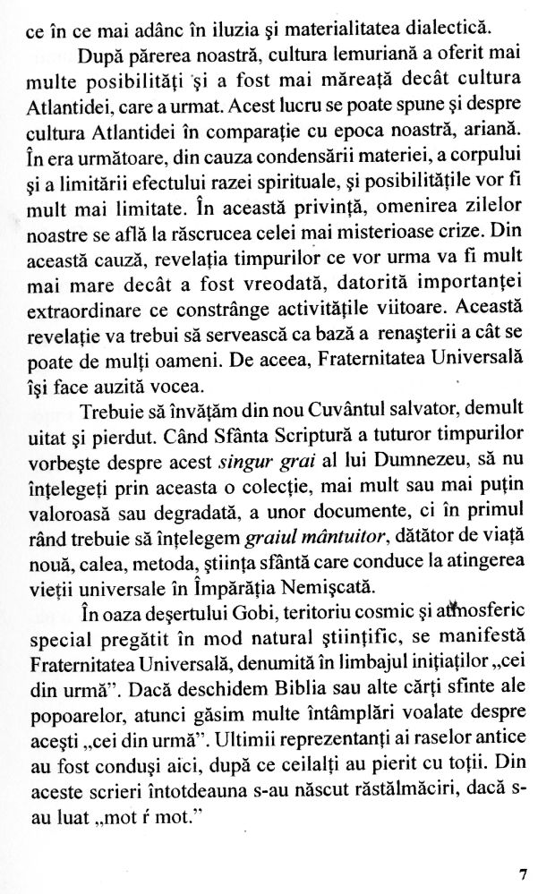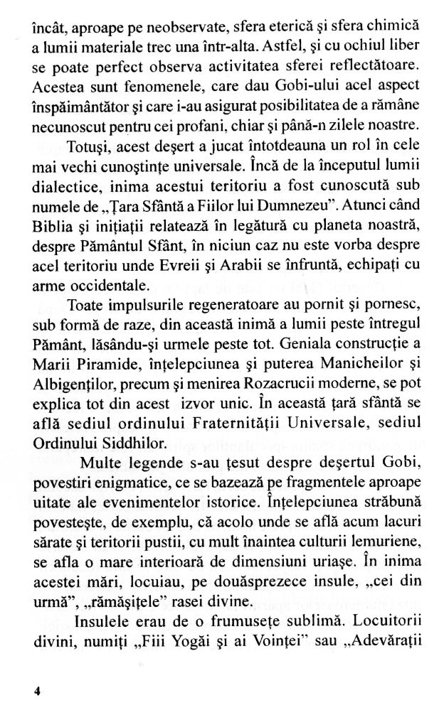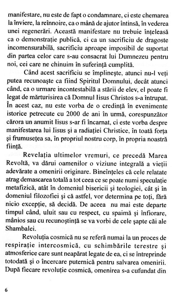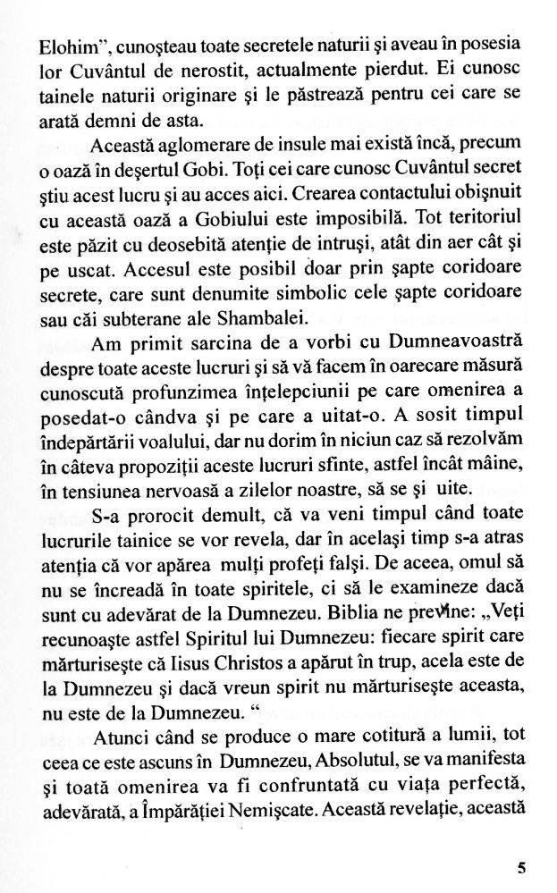 | A pătrunde în Shambala înseamnă a reorienta în totalitate misteriosul sanctuar al capului către marele Scop, adevărata Regalitate a omului, pentru a restabili, cu ajutorul luminii septuple, care provine din suflet, legătura cu cele șapte aspecte ale „Pământului Sfânt”, domeniul său de viață originară. |
