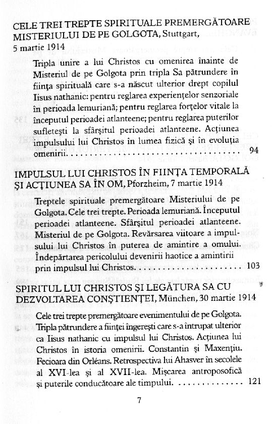 | Conferințele prezintă acțiunile (jertfele) Entității spirituale a lui Christos în procesul de evoluție și în relație cu dezvoltarea conștienței omenești. |