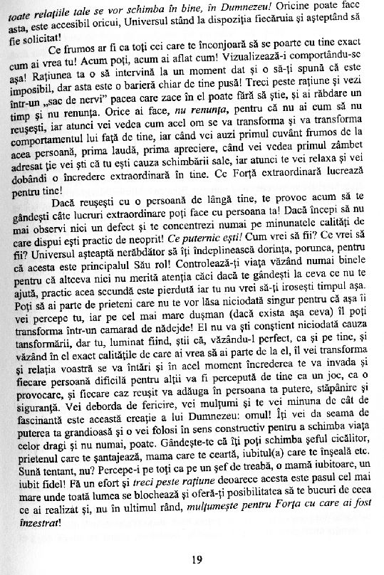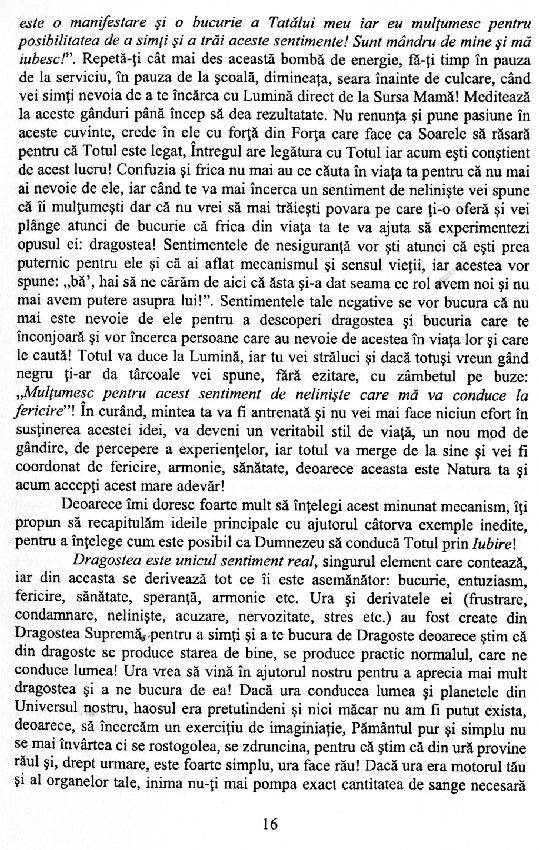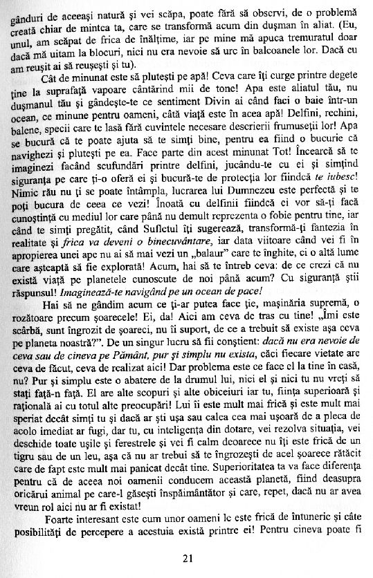 Relaxează-te, bucură-te de viață, bucură-te că exiști și deschide-te către comorile Infinitului, trăind clipa prezentului! A sosit momentul să-ți transformi visele mărețe din Ținutul Fantasticului, în experiențe înălțătoare din realitatea fizică. Ești în siguranță acum! Ești în Dumnezeu!