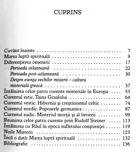 În prezenta carte este considerabil dezvoltată tematica unei publicații mai vechi apărute inițial în seria „Stimulări pentru munca antroposofică″ sub titlul Mysterienstrdmungen in Europa und die neuen Mysterien (Curenți misteriali în Europa și Noile Misterii), fiind expusă în contexte mai ample. Nu se intenționează o tratare exhaustivă a temei; este vorba mai degrabă, în primul rând, de un fir conducător pentru propriul studiu în acest domeniu imens al evoluției spirituale a omenirii. Sper că această carte va putea contribui cu ceva la lupta pentru un nou spirit în cultură, care este un spirit al întâlnirii.