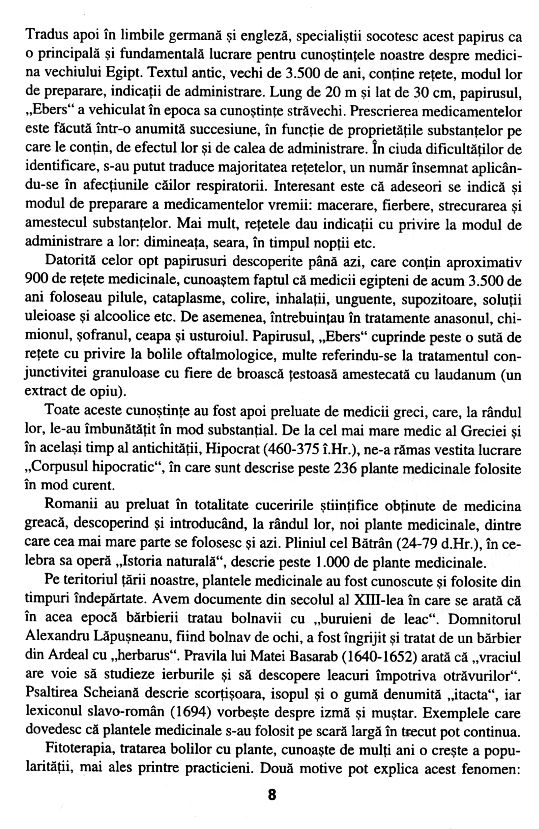 | În lupta grea cu forțele complexe ale naturii, din cele mai vechi timpuri, omul s-a confruntat permanent și cu cele mai agresive boli. Neavând niciun alt mijloc de acțiune împotriva bolilor, a fost nevoit să-și caute remediile absolut necesare chiar în mediul înconjurător, unde se găseau din belșug cele mai diverse plante, arbuști și arbori... |
