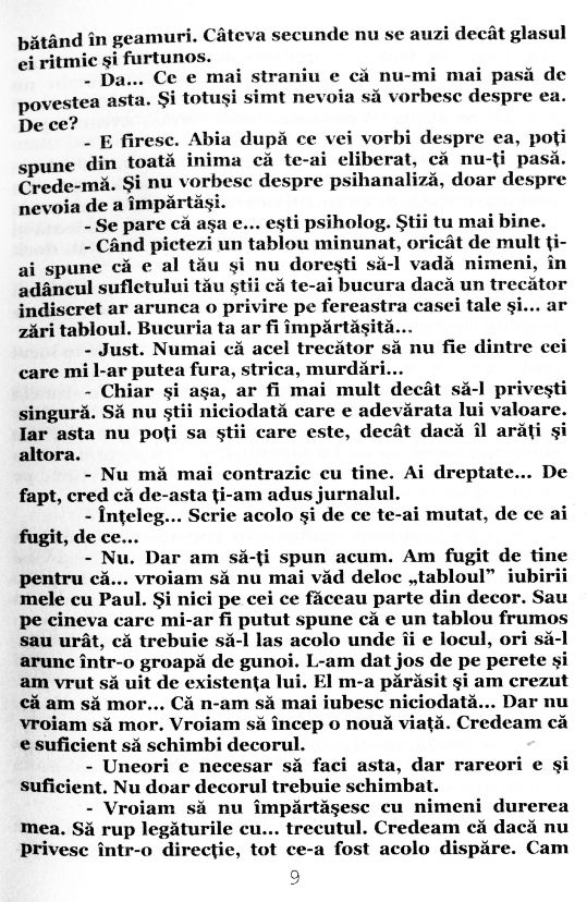 Mi-am dat seama că jurnalul ei, era mai mult decât un jurnal, că în acele pagini îngălbenite de vreme e cuprins spiritul acelor vremuri schimbătoare din anii 90, spiritul studenției noastre, sufletul viu al acelui timp plin de farmec. Și... sufletul ei, întreg...
