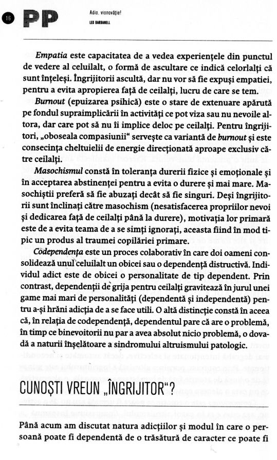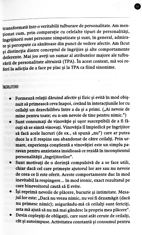 | Atunci când bunăstarea celorlalți este tot timpul mai presus de nevoile tale, iar sentimentul de vinovăție nu-ți permite să refuzi solicitările neîntrerupte, începi să te simți epuizat și gol pe dinăuntru. |