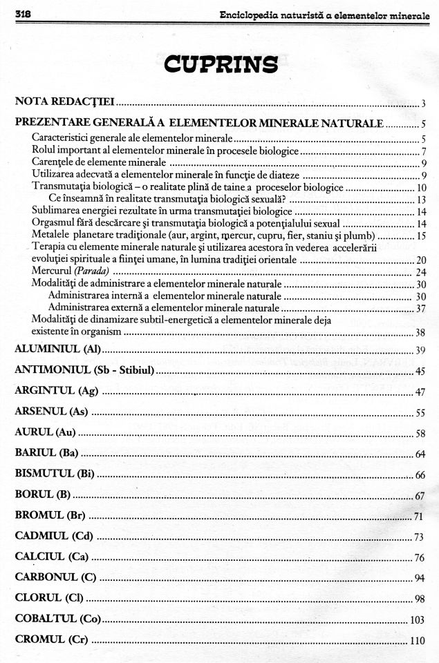 Elementele minerale sunt prezente la toate nivelurile organismului, exercitând importante acțiuni specifice. Ca și majoritatea vitaminelor, ele nu pot fi sintetizate de către organismul uman. Totuși, prin misteriosul proces al transmutației biologice, unele elemente chimice se pot transforma în alte elemente chimice, chiar la temperatura corpului uman, degajând lent cantități uriașe de energie care, prin intermediul proceselor ulterioare de sublimare, vor putea fi utilizate cu înțelepciune de către cei inițiați.