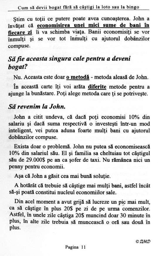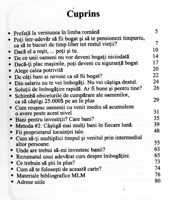 Vei învăța că există mai multe căi de dobândire a bunăstării financiare. Vei putea alege oricare dintre metodele prezentate. Nu există o rețetă unică pentru dobândirea unei independențe economice și financiare. Există mai multe posibilități. Nu trebuie să alegi aceeași cale pe care a ales-o și vecinul tău.