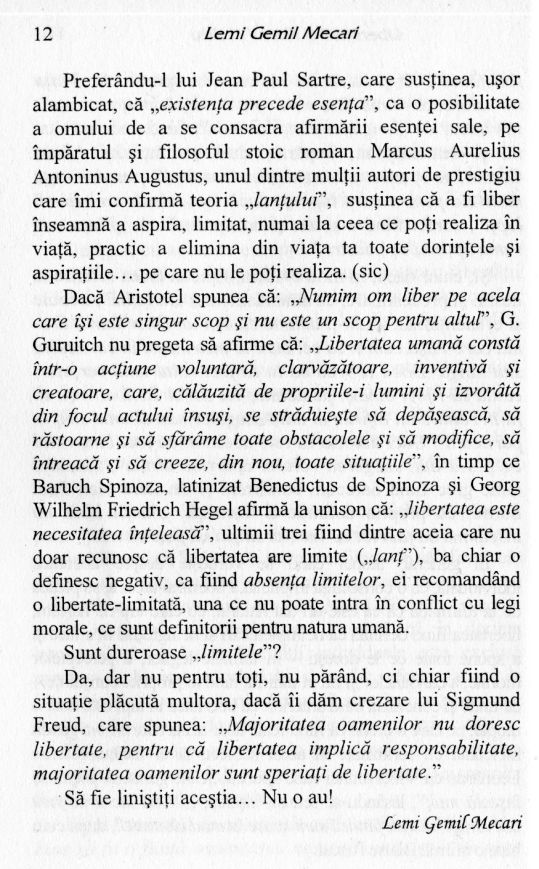 Cartea aceasta, asemenea tuturor celorlalte scrise vreodată de cineva, indiferent de subiectul tratat, nu este cu adevărat de folos tuturor, căci tare mă tem că Nicolae Iorga avea întreaga dreptate atunci când spunea: „Nu te conving cu adevărat decât ideile tale”, completându-l cu cele spuse de către Arthur Schopenhauer:
