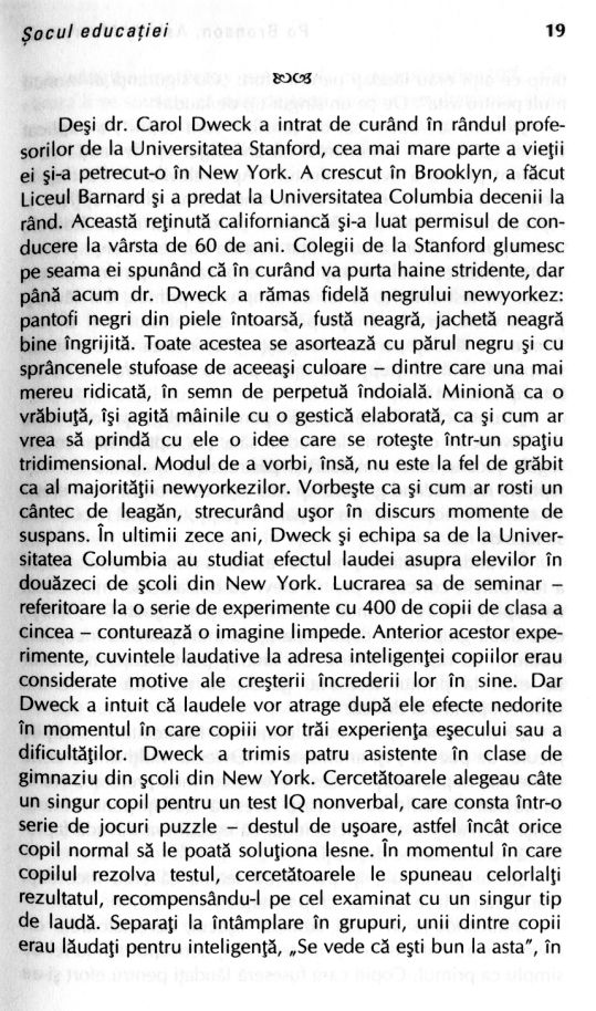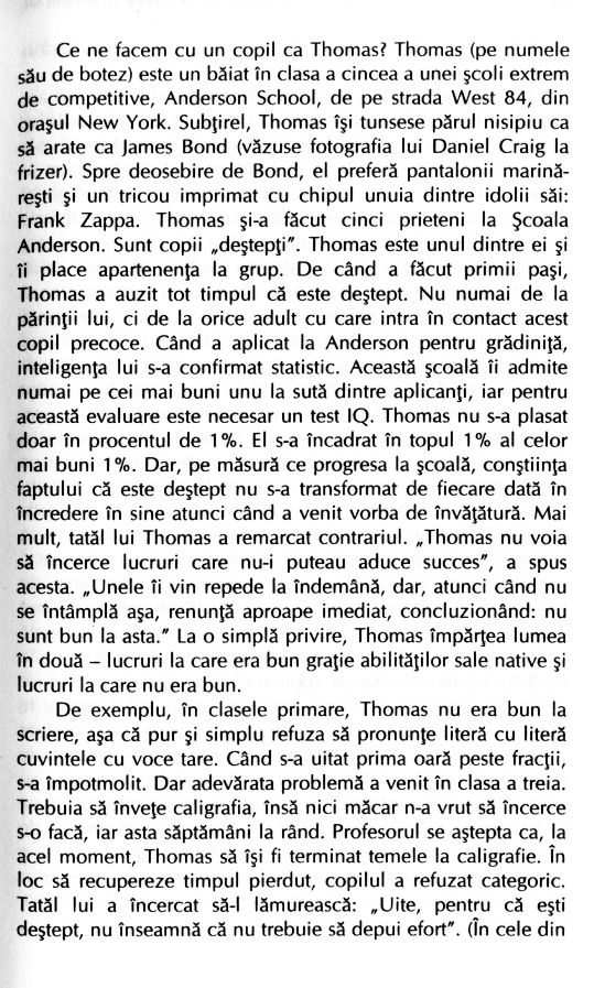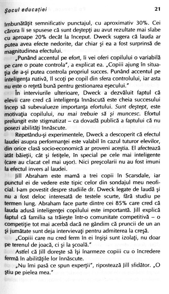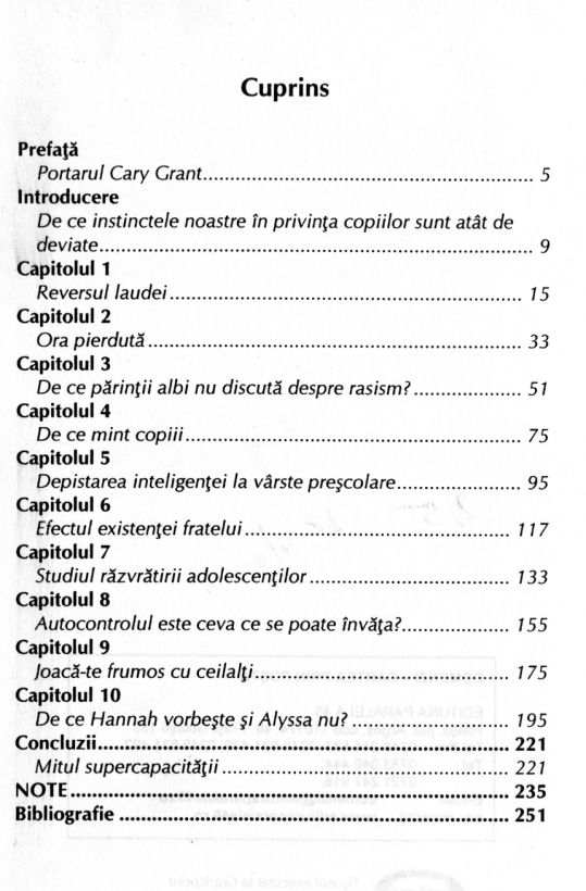 • De ce instinctele noastre în privința copiilor sunt atât de deviate? • Reversul laudei • Depistarea inteligenței la vârste preșcolare • Motivele răzvrătirii adolescenților • Autocontrolul este ceva ce se poate învăța? • De ce mint copiii? • Mitul supercapacității