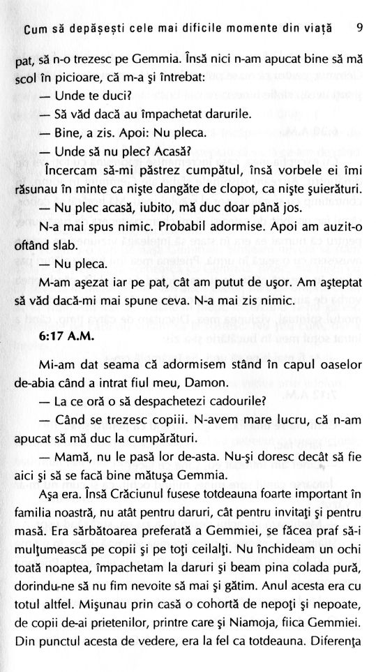 Adesea e greu să identifici momentul exact în care viața ți se face praf și pulbere. În majoritatea cazurilor, lucrul acesta nu se întâmplă dintr-odată. Aproape nimeni dintre cei ce trec printr-o asemenea experiență, care au pierdut ce le era mai drag sau ființa în care au crezut, nu-ți va spune că a fost vorba de un telefon sau de o scrisoare, ori că au avut brusc o revelație, o iluminare, în urma căreia viața, așa cum o înțelege fiecare, să se prăbușească.