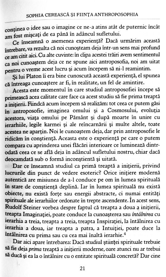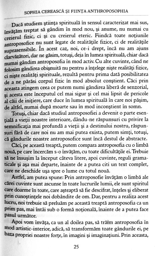 Mulți ani petrecuți cu întrebarea în suflet, ce înseamnă antroposofia, împreună cu un studiu intens al științei spirituale și o practică meditativă continuă bazată pe lucrările și conferințele lui Rudolf Steiner au dus, treptat, la o trăire absolut nouă a antroposofiei. Aceasta i s-a revelat a fi nu numai o teorie spiritual-științifică, care se nutrește din izvoarele creștinismului esoteric, ci și o entitate vie a lumii spirituale, ca Ființa Anthroposophia, componenta umană a Sophiei Cerești – Înțelepciunea divină.