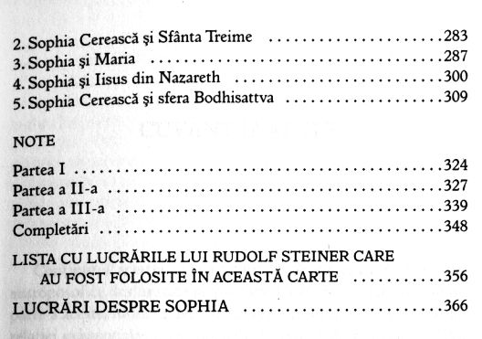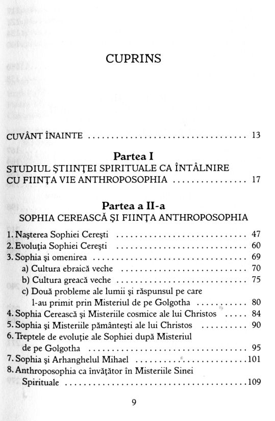 Prima parte a cărții conține descrierea căii pe care s-a ajuns la o asemenea trăire ființială a antroposophiei. Părțile a doua și a treia constituie un progres real în ceea ce privește înțelegerea naturii și acțiunii în Cosmosul nostru atât a Sophiei Cerești, cât și a entității suprasensibile Anthroposophia.
