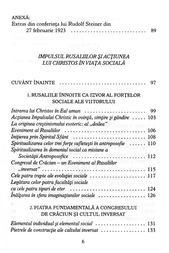 Cu astfel de întrebări Sergej O. Prokofieff ne îndreaptă atenția spre evenimentul deosebit al Rusaliilor și consideră Congresul de Crăciun din 1923-1924 pentru întemeierea Societății Antroposofice Generale drept o metamorfoză a acestui eveniment. Prin munca antroposofică desfașurată în comun se pot dezvolta acele facultăți interumane pe baza cărora Impulsul înnoit al Rusaliilor poate deveni în viața socială realitate. Totodată în ambele lucrări din volum problemele legate de cultul inversat sunt dezvoltate și aprofundate din perspectiva viitorului societății spirituale omenești.