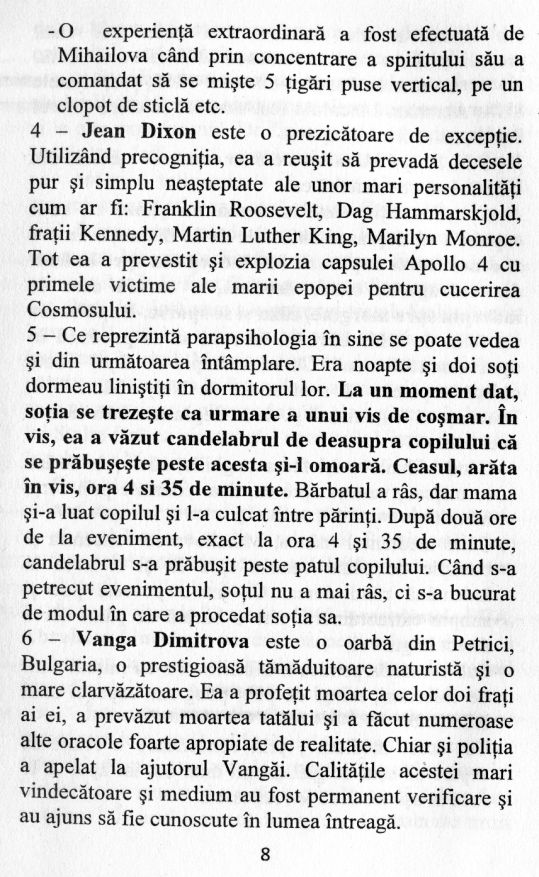 Cursul practic de parapsihologie are ca scop să reprezinte un ghid practic pentru cititori, care să-i informeze despre elementele specifice ale fenomenelor paranormale. Lucrarea vrea să prezinte o serie de exerciții și practici tipic parapsihologice care, utilizate corect, să le pună în valoare forțele subtile, latente, cu care sunt înzestrați practicanții și să le perfecționeze capacitățile de viețuire într-o lume dură, în care, sărăcia, șomajul, răfuielile religioase, disputele politice, terorismul, războaiele, criza mondială și anarhia încearcă să strivească ființa umană.