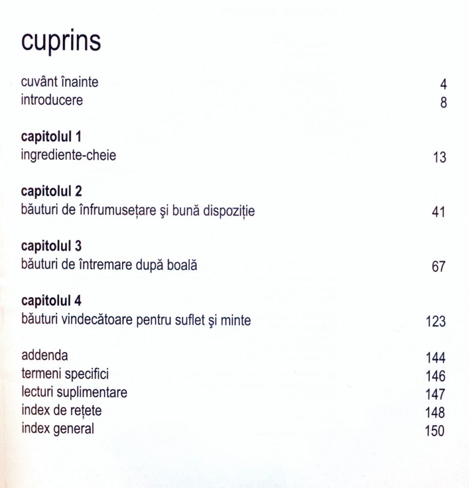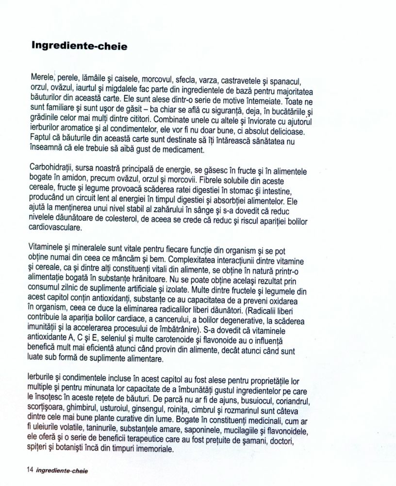 | Cuprinde băuturi pentru alimentații speciale, regăsind binefacerile tămăduitoare a peste 25 de ingrediente-cheie, de la migdale la mere, de la orz la sfecla roșie, de la usturoi și ghimber la ovăz și ceapă. |