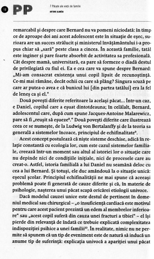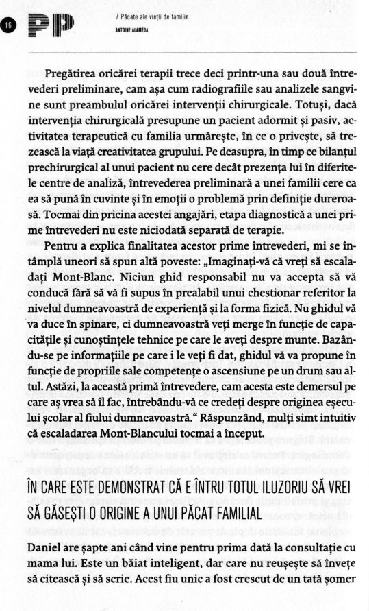 Cum se face că. dintr-odată. copilul silitor începe să ia numai note proaste la școală? De ce bebelușul refuză brusc să mai mănânce? În ce fel agresivitatea explozivă devine rațiunea de a fi pentru unele cupluri? De ce partenerii se despart surprinzător după ce copilul lor pleacă la facultate? Refuzând să identifice sursa problemelor strict la nivel individual psihiatrul francez Antoine Alaméda ne îndeamnă să privim cu mai multă atenție către relațiile problematice stabilite în interiorul unui cămin. Toate aceste raporturi disfuncționale sunt puse sub semnul a sapte „păcate” familiale, abordate interdisciplinar (istorie, antropologie, știința Sistemelor).