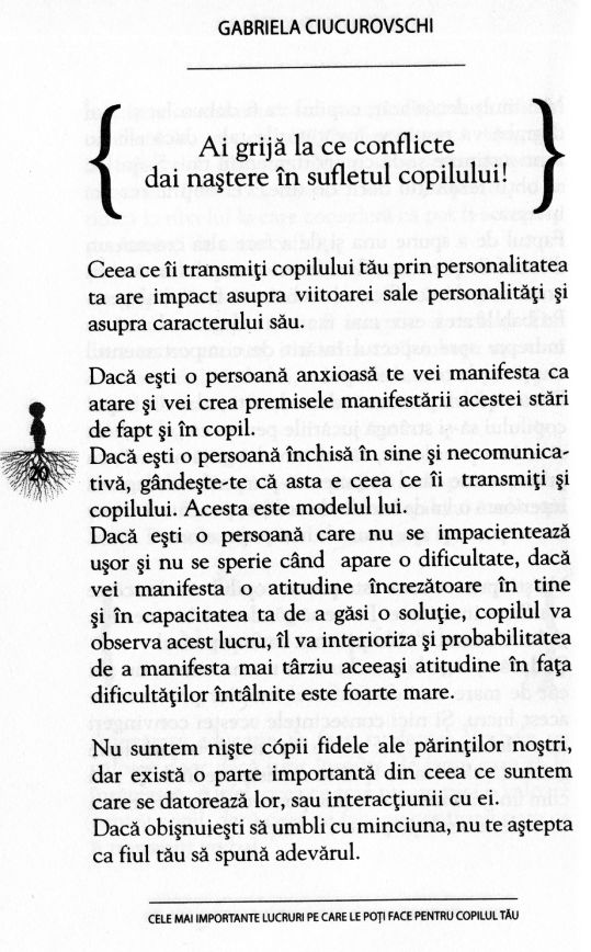 A fi părinte nu este cea mai ușoară meserie. Și mulți părinți ar vrea ca la începutul acestui proces de creștere și educare a unui copil să știe mai multe lucruri. Meseria de părinte se învață însă, în mare parte, văzând și făcând. Părintele crește o dată cu copilul său. Părinți și copii evoluăm împreună. Direcția este cea care contează.