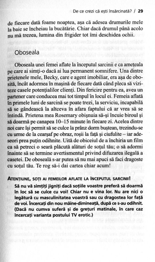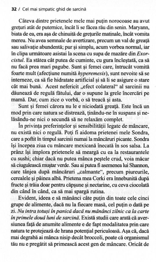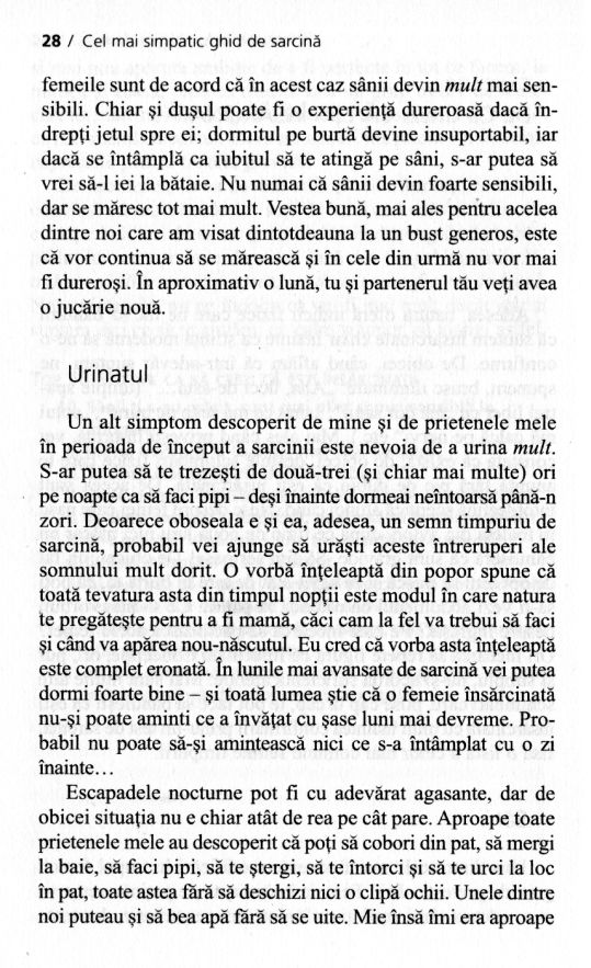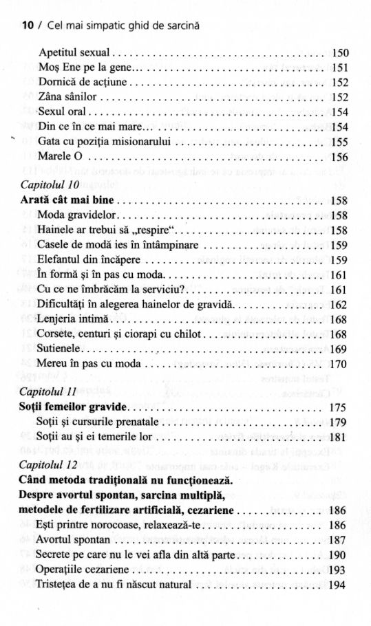 Doar aici vei găsi acele informații trecute sub tăcere de medici și de alte ghiduri de sarcină, din falsă pudoare sau pur și simplu din incapacitatea de a le acorda importanța pe care o merită. Autoarea, Vicki Iovine, a născut patru copii în șase ani și a cunoscut cam toate dificultățile, dar și deliciile acestei experiențe de fiecare dată unice. Soluția ei: un pic de umor, foarte multă răbdare și infinită dragoste pentru ființa care prinde contur în tine.