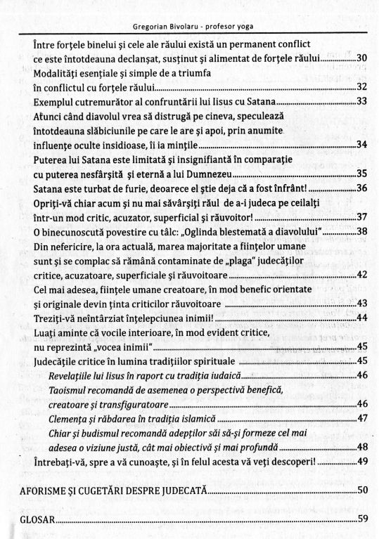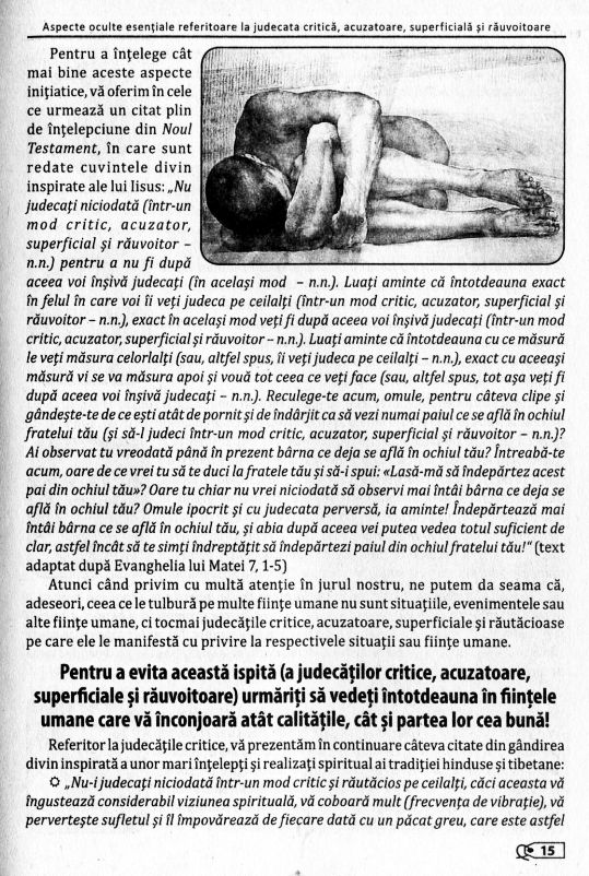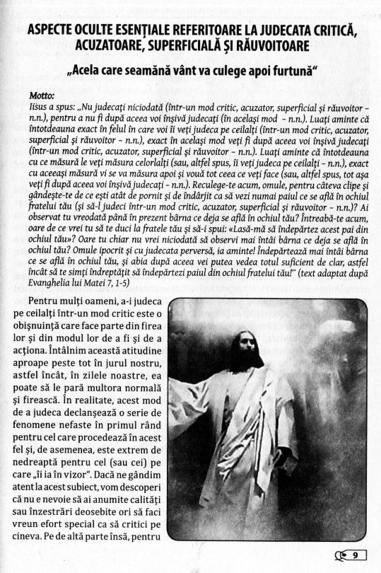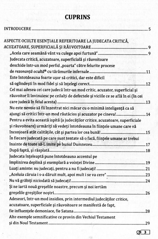 Studiind cu atenție această broșură, vom fi puși în gardă cu privire Ia feluritele aspecte ale acestei judecăți critice, acuzatoare, superficiale și răuvoitoare, devenind mai conștienți de aceste manifestări în lumea înconjurătoare, dar mai ales ne vom putea auto-obiectiva și lua mai apoi măsurile necesare, în cazul în care sesizăm că și în noi există astfel de tendințe.