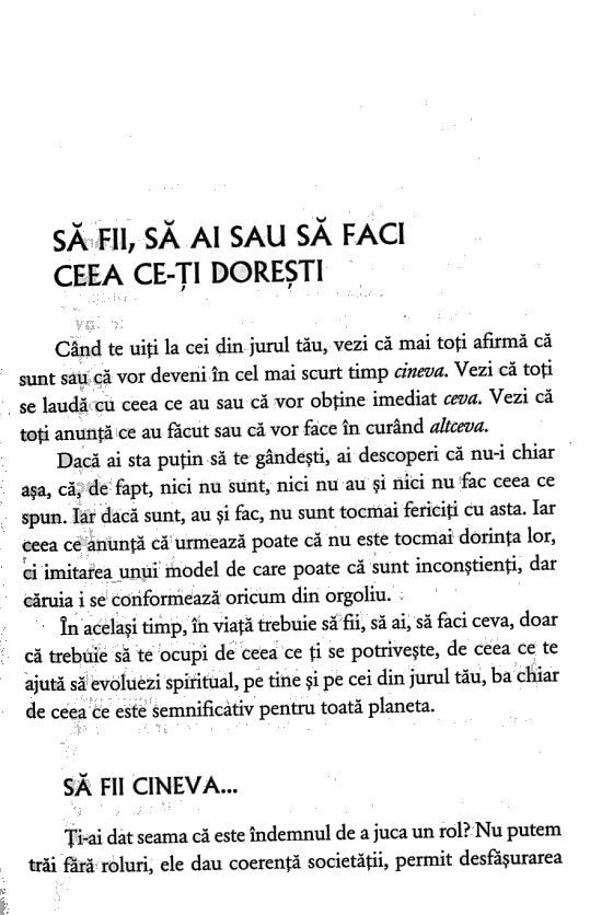 Dacă încă nu ai reușit ... 7 Să fii, să ai sau să faci ceea ce-ți dorești ... 9 ... să faci bani ... 16 ... să fii puternic, să fii șef ... 22 ... să devii celebru ... 28 ... să iubești ... 33 ... să ai copii ... 37 ... să nu ai dușmani ... 42 ... să călătorești ... 45 ... să crezi în Dumnezeu ... 49 ... să scrii o carte ... 53 ... să sădești un pom ... 57 ... să ai grijă de un prieten din lumea animalelor ... 60 ... să divorțezi ... 63 ... să învingi boala ... 67 ... să ridici o casă ... 70 ... să înoți ... 74 ... să ai prieteni ... 77 ... să pleci de acasă ... 80 ... să citești această carte ... 84 Poți să reușești acum! ... 85 Tehnici ... 90 Respirația pentru relaxare ... 91 Meditația tăierii stringurilor care susțin programe și forme-gând ... 92 Reiju ... 94 Fațetele sufletului ... 96 Respirația Elohimilor ... 98 Conectarea la Șinele Superior. Varianta scurtă ... 100 Cele patru elemente ... 101 Inițierea în Marea Piramidă ... 103 Meditația Shenu ... 106 Inițierea penta-flăcării lui Saint-Germain ... 109 Tehnica de primire a simbolurilor prin channelling ... 113 Simbolul vindecător ... 117 Meditația pentru curățarea sufletului ... 120 Dezvoltarea simțurilor ... 123 Dezvoltarea clarsimțurilor ... 125 Tehnici de vizualizare ... 126 Conectarea la Șinele Superior ... 127 Tehnică pentru deschiderea celui de-al treilea ochi ... 128 Activarea corpului de lumină ... 130 Meditația pentru călătoria în timp ... 131 Meditația pentru relaxarea profundă ... 132 Meditația Arborelui vieții ... 134 Mantrele ... 135 Sri Mrityunjaya Mantra numită și Mahamoksha Mantra ... 137 Meditația Luminii clare ... 139